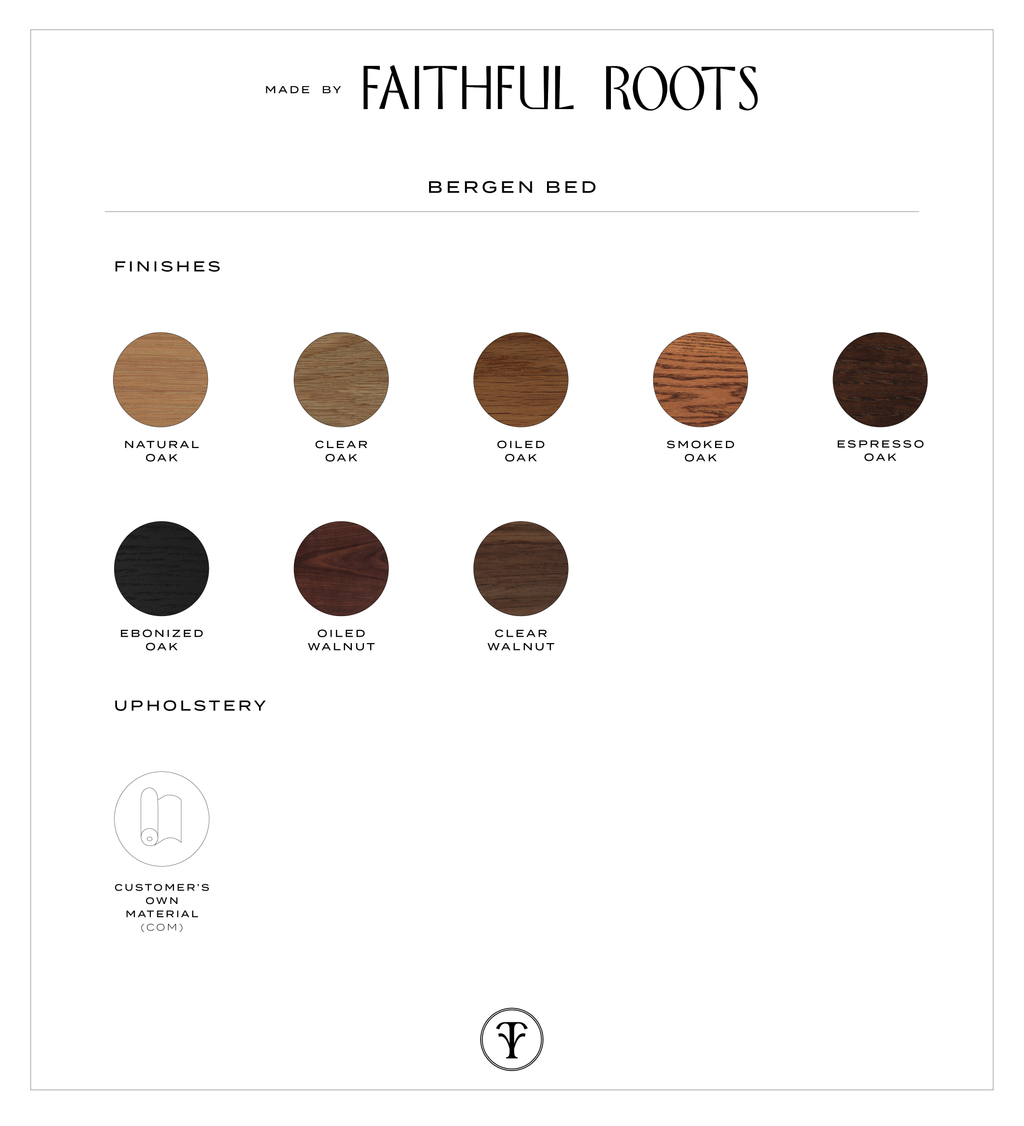Rest in both style and comfort. Bergen takes note from Scandinavian design through its simple, open frame and carved wood post and legs. Effortlessly assembled, Bergen can transform in feel with any fabric of choice for added dimension and a cozier night’s sleep.